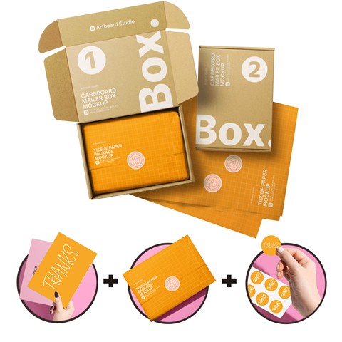 กล่องเมลเลอร์ทั่วไปแพ็ครวม (ขอบคุณการ์ดและกระดาษทิชชู & สติกเกอร์) บรรจุภัณฑ์เสื้อผ้ารองเท้ากระดาษกล่องจดหมาย